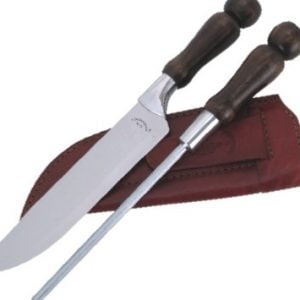 Kit Faca Gaúcha 8″ – churrasco e lida – com afiador e bainha de Couro